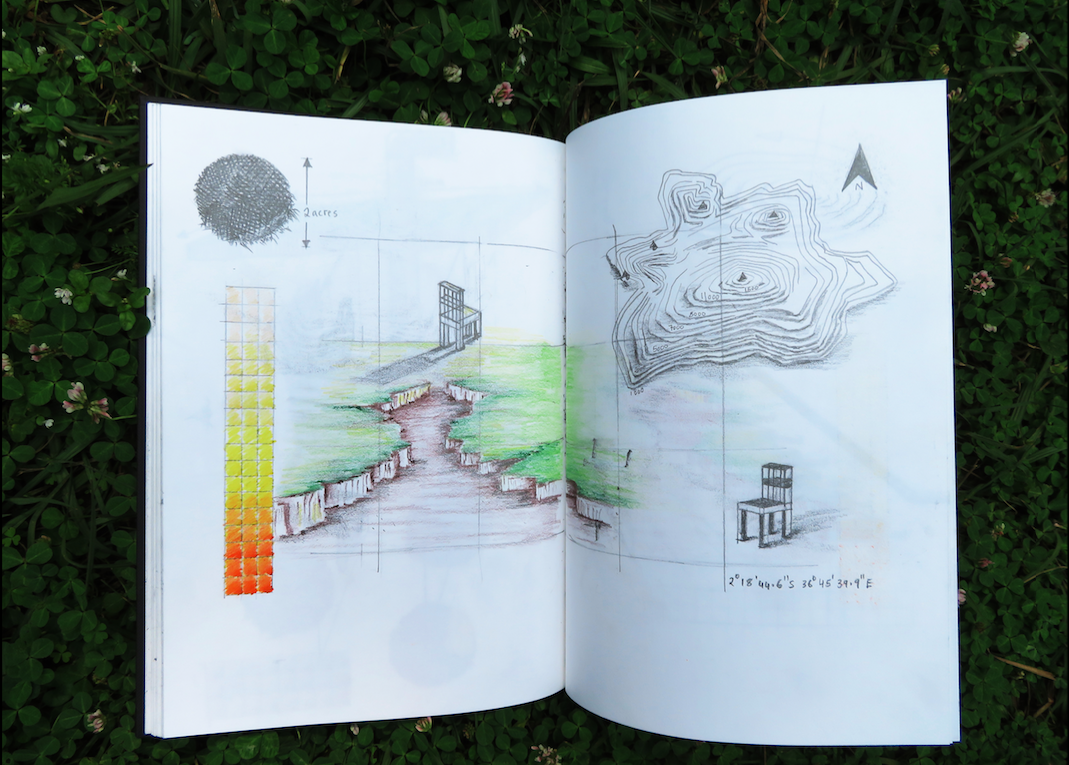 The acquisition began with a set of measurements relating to an area in my studio occupied by a machine; in this case a projector and where the projected image would fall. This ‘image’ was catapulted out of the studio through a set of coordinates, subsequently locating a piece of land and seasonal river 150+km away. The land and river exist in a state of both wholeness and collapse in a region that bears deep colonial and ecological markers in Kenya. The land thus produces a site where something emerges in a sort of backwards reading & where a set of blueprints undoes time through this shapeshifting river.